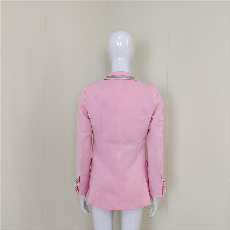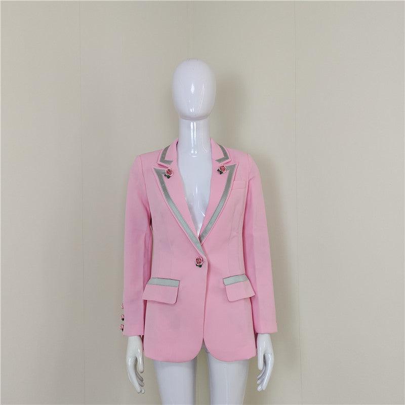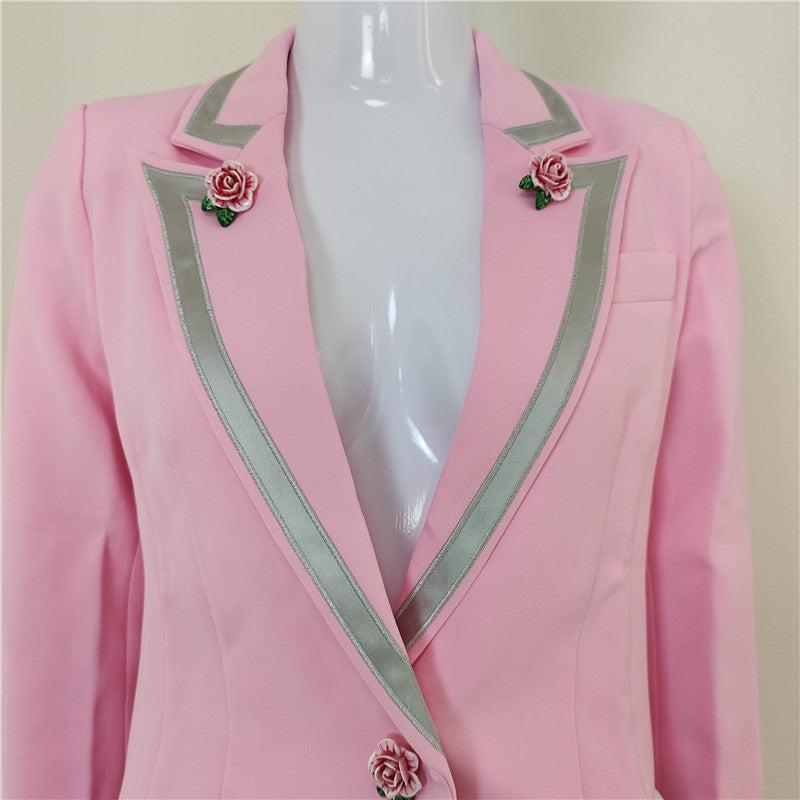 A4564 Elegant Pink Long Sleeve Single Button Slim Winter Wear Women Coat 2021