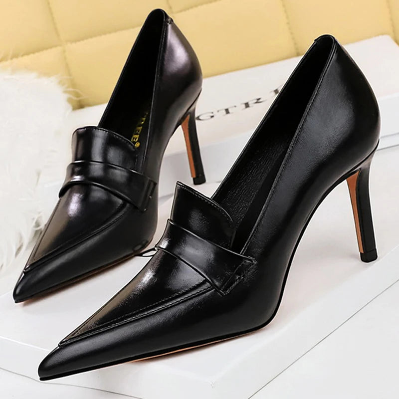 BIGTREE Shoes Retro Pointed Toe Women Pumps Leather Shoes High Heels Versatile