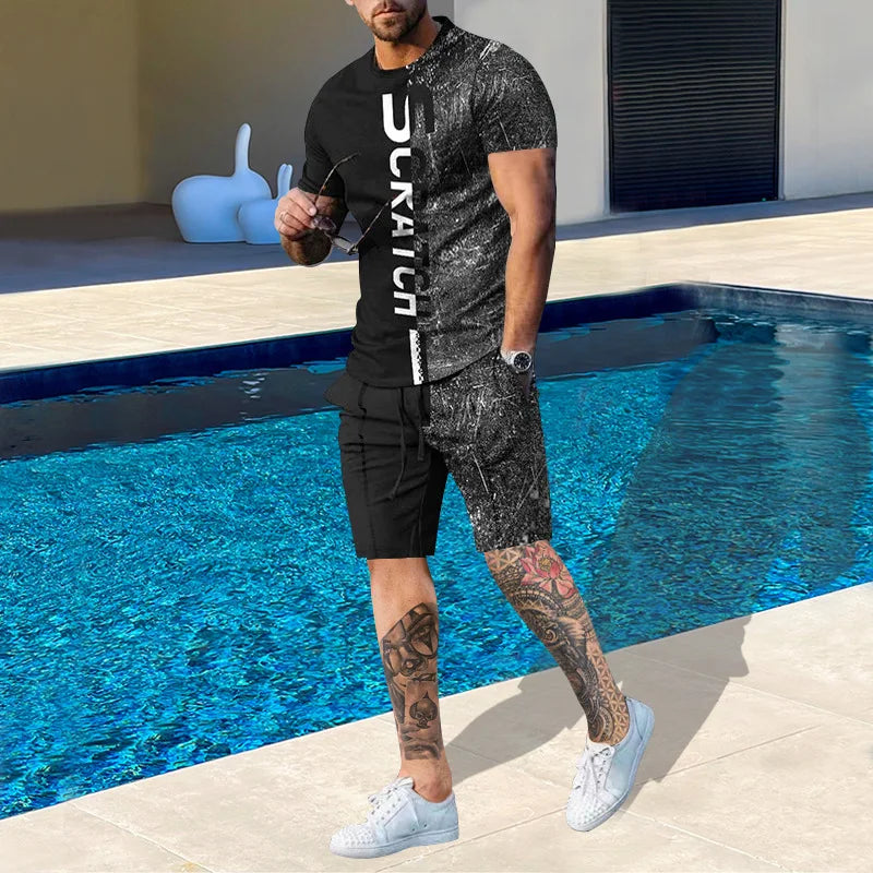 Casual Men Clothing Two Piece Set Shorts Summer T Shirt and Short Set Men