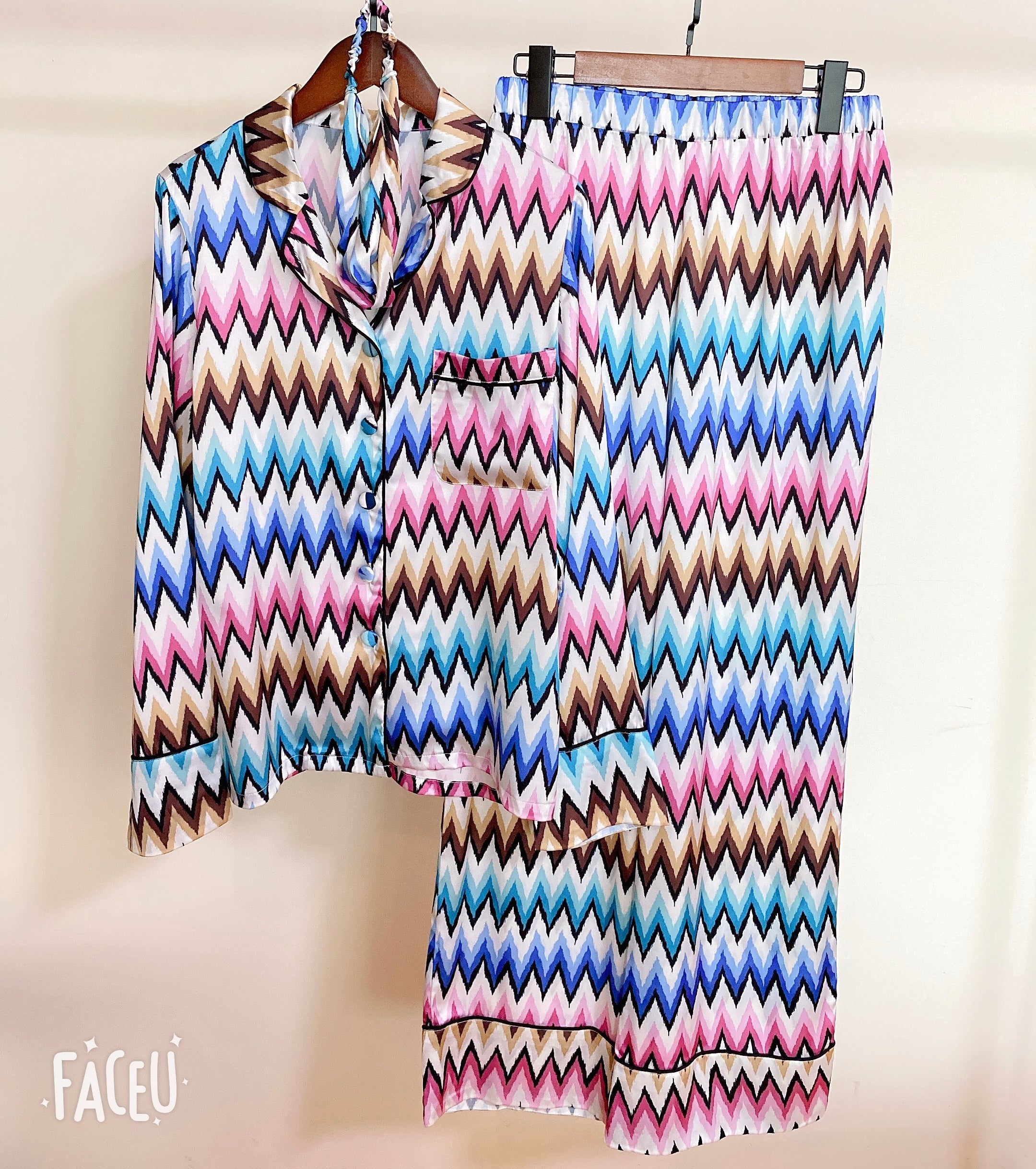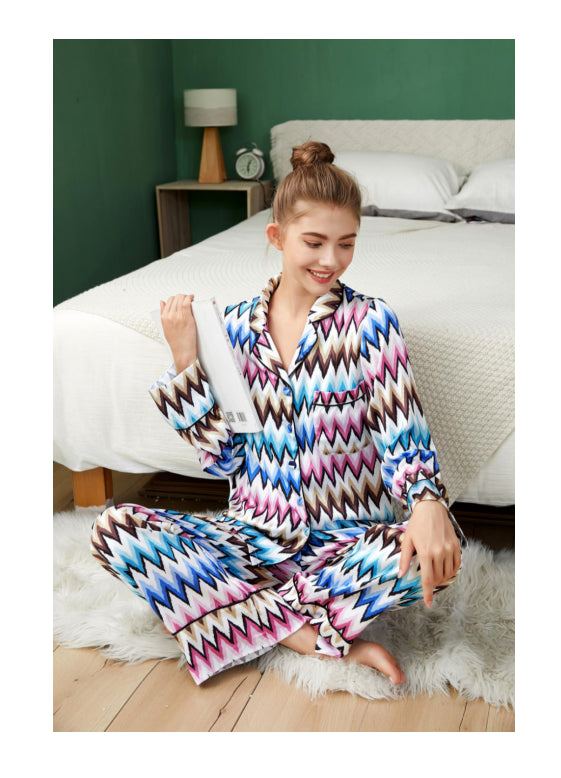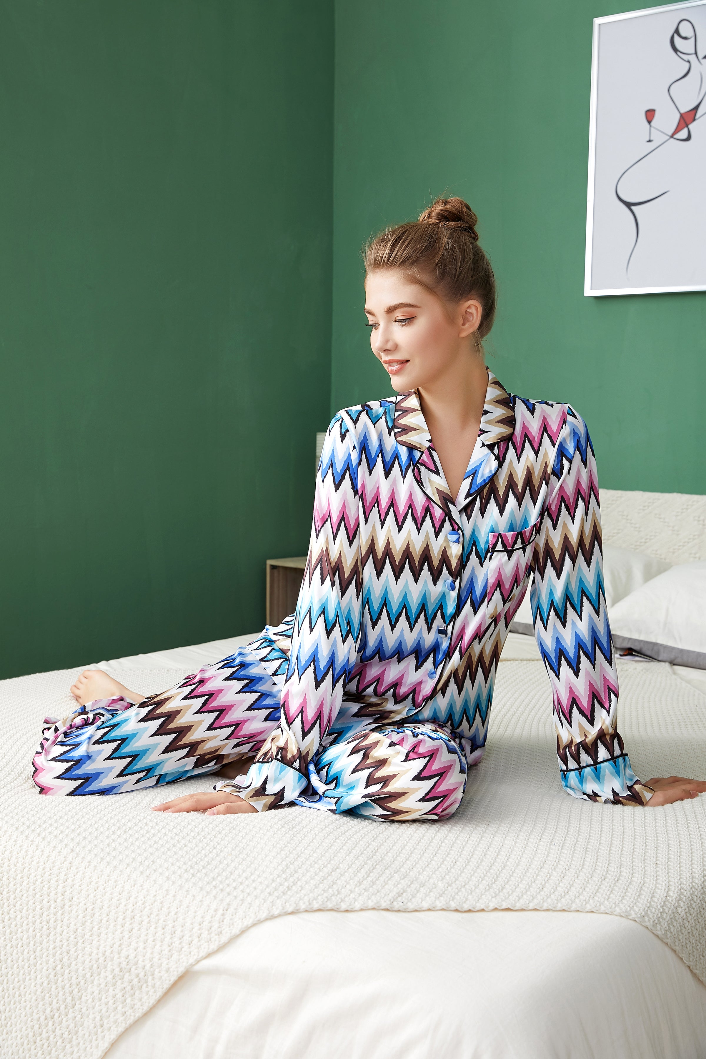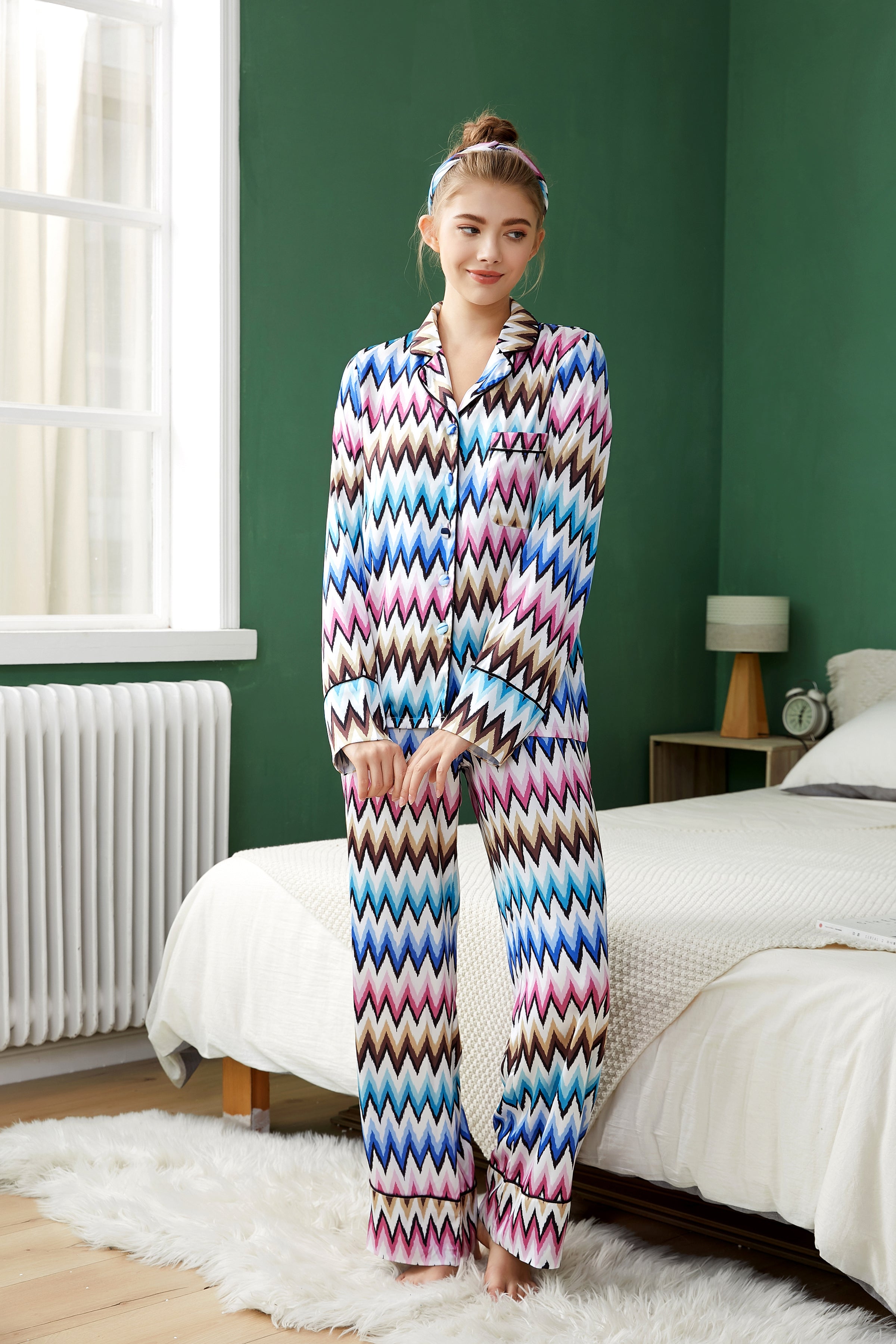 Designer Custom Color Printed Long Sleeve Silk Pajamas Women Sleep Wear Pajamas