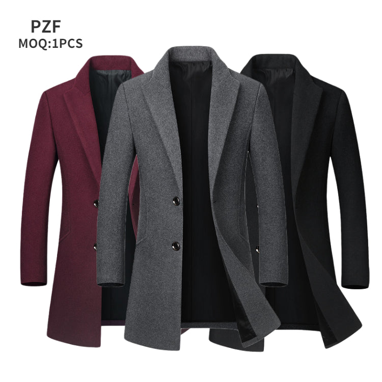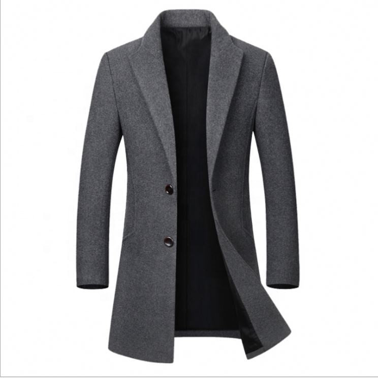 Factory Wholesale 2024 Men Wool Trench Coat Slim Overcoat Warm Winter Long Men's