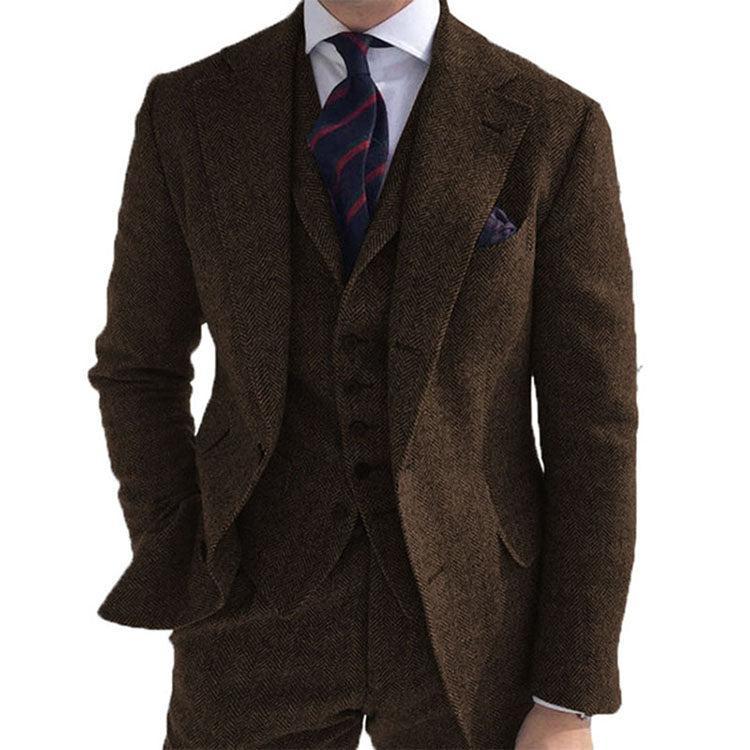Gray Wool Tweed Winter Custom Men Suits Italian for Wedding Formal Groom