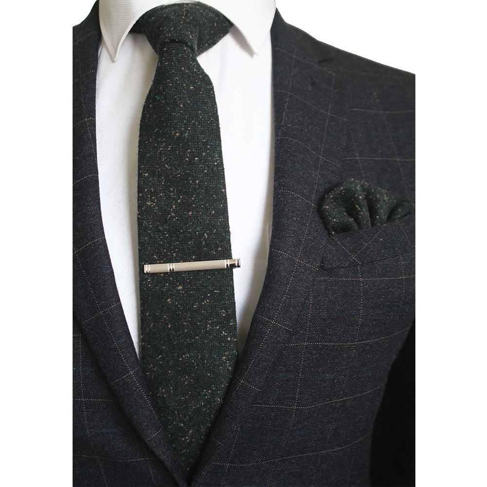 KAMBERFT Solid Color Cashmere Wool Necktie and Pocket Square Tie Clip Sets