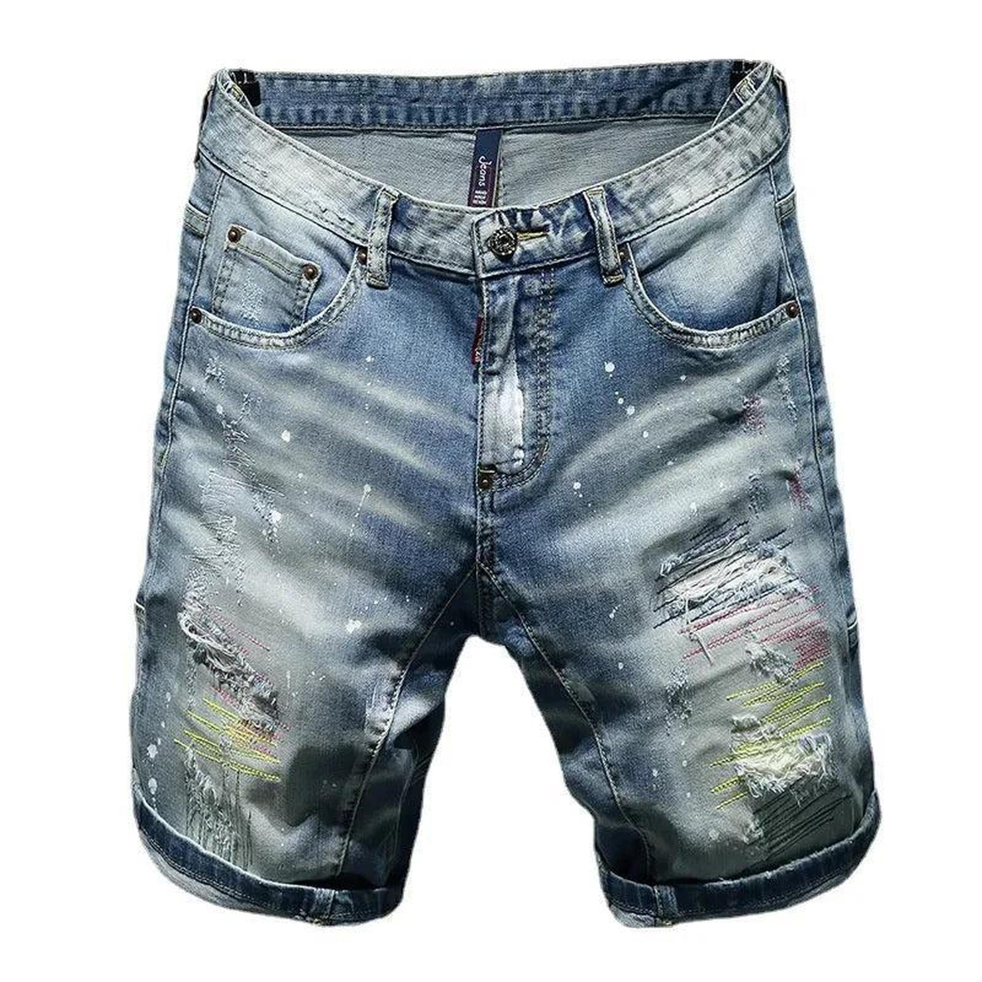 Men Summer Blue Shorts Jeans Holes Denim Shorts Paint Casual Streetwear Jeasn