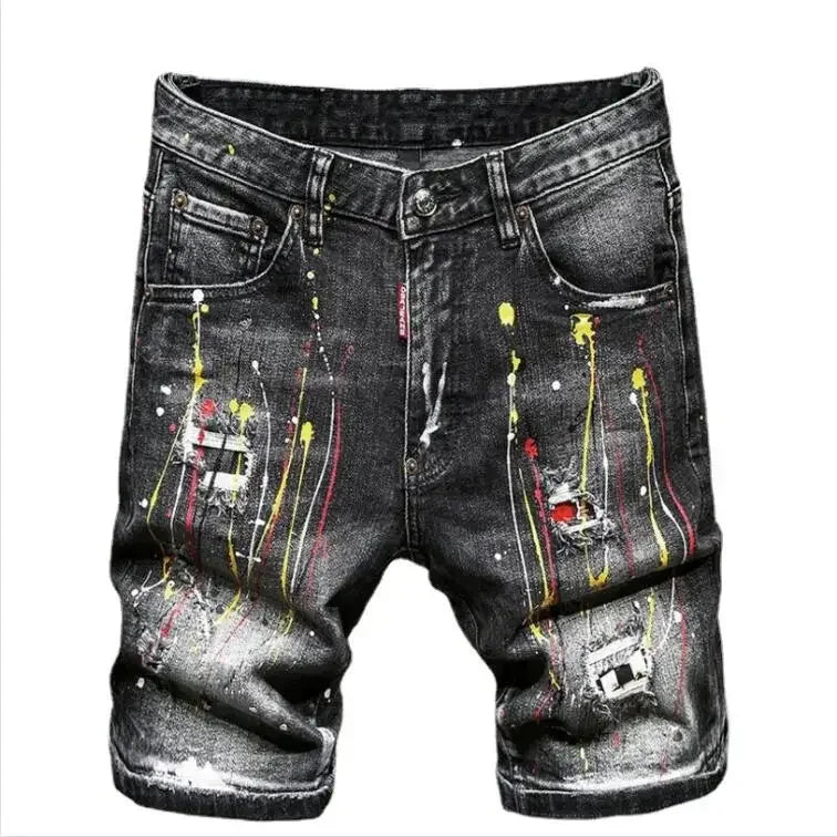 Men Summer Blue Shorts Jeans Holes Denim Shorts Paint Casual Streetwear Jeasn