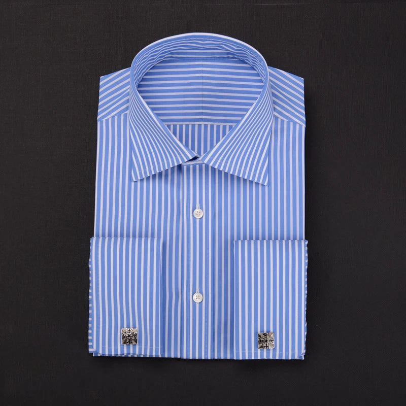 Men's Shirt French Business Shirt With Double Buckle and Striped