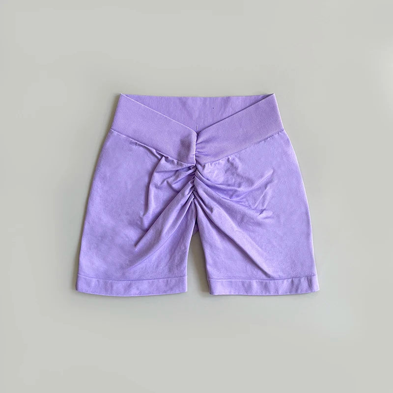 Seamless Women Yoga Shorts Deep v Back Waist Gym Shorts Workout Running short