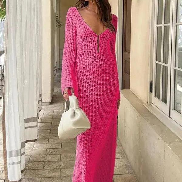 Sexy Cover Up Long Sleeve Long Dress Women Backless Beach Wear Bathing