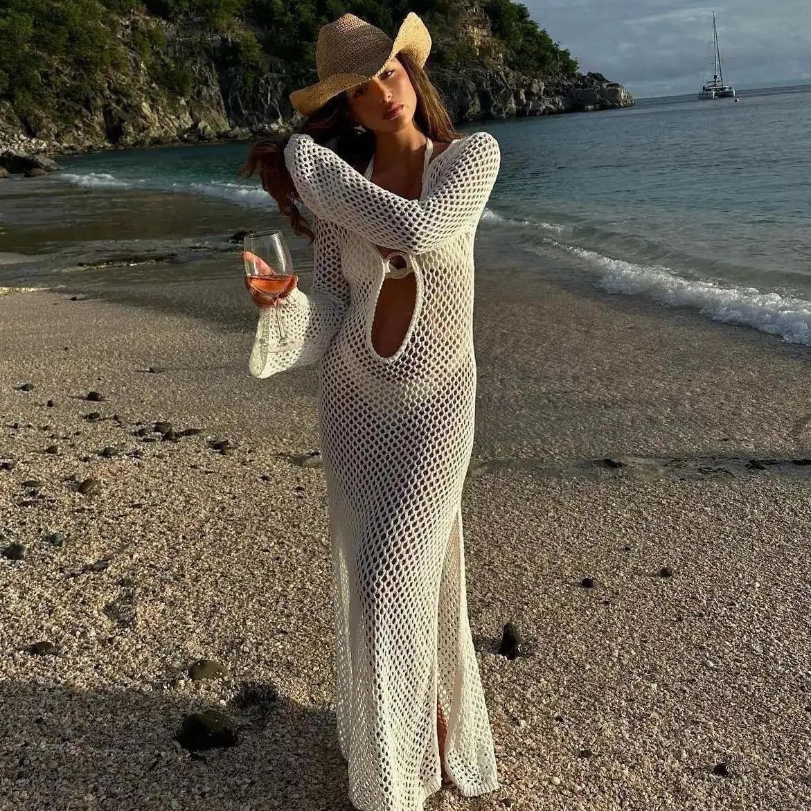 • Sexy Cover Up Long Sleeve Long Dress Women Backless Beach Wear Bathing - Constantin & Crys
